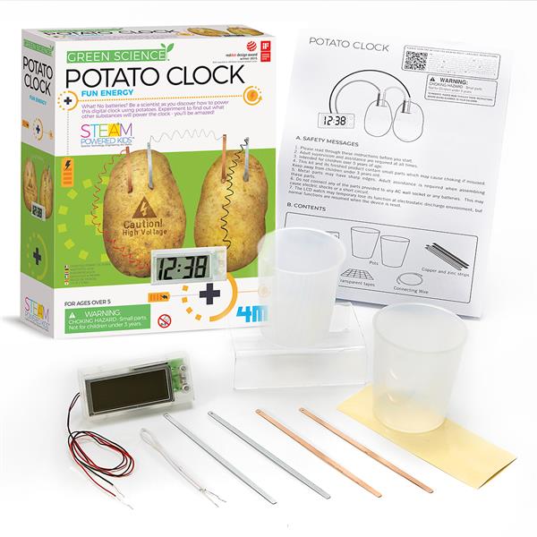 Набор от 4М будет интересен детям младшего школьного возраста. Создавая картофельные часы, дети узнают новые факты из химии и физики, повысят интеллект, интерес к науке, разовьют мышление, изобретательность.