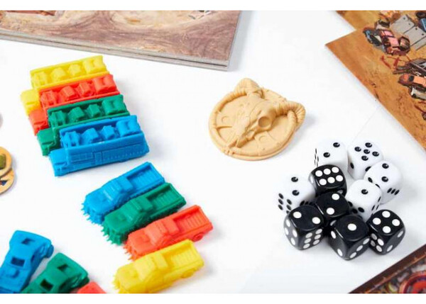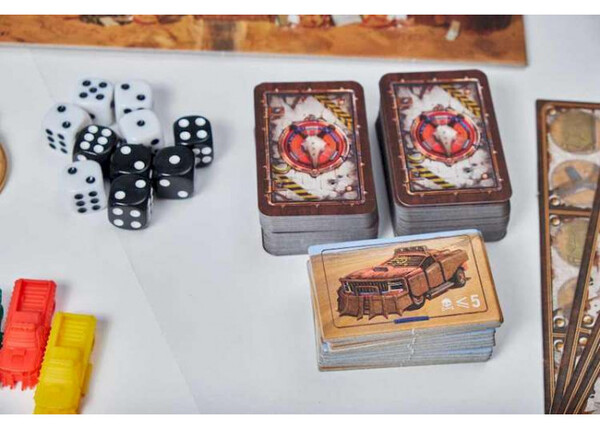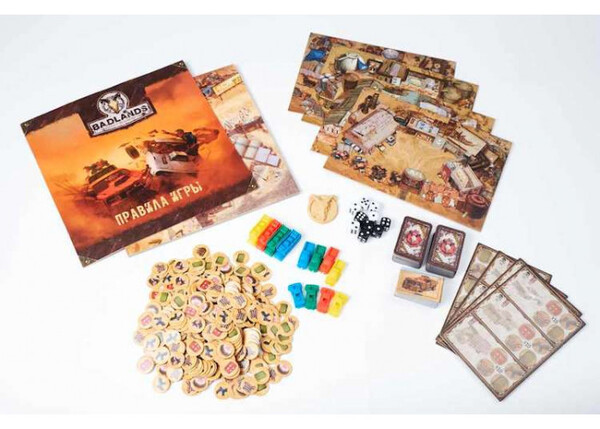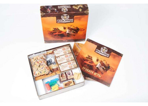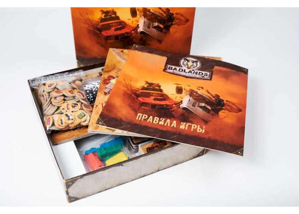 В настольной игре Badlands: Аванпост человечества  2-4 игрока от 13 лет занимают места предводителей незначительных поселений людей, переживших ядерную войну, и продолжающих бороться за дальнейшее существование в сложных климатических условиях. Вас ожидают тематическое оформление и яркий дизайн, более 70 уникальных карт предметов, монстров и персонажей, 12 высокодетализированных миниатюр машинок и караванов и броски кубиков. И это всё погружено в глубокую атмосферу классического постапокалипсиса. Валюта у нас здесь нестандартная: оружие, бензин и металлолом, можно встретить пивные крышки.