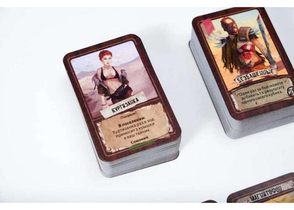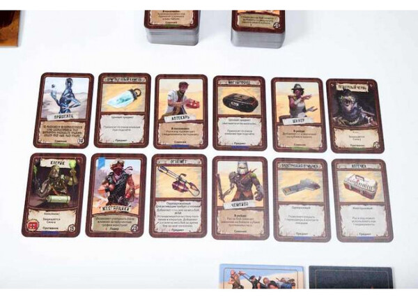 При подготовке к игре участники определяются с цветами и получают арсенал компонентов, состоящий из карт действий, поселений, снаряжения и лидеров-союзников, а также ресурсов в виде крышек, топлива, оружия и металлолома.