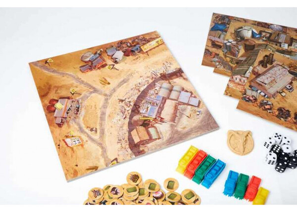 • доставлять товар с помощью своего каравана к другим поселениям и Аванпосту или вступать в торговые отношения со скупщиком. Торговый караван может перемещаться после розыгрыша карты «Караван» за жетон топлива. Караван для целостности перевозимых ценностей лучше бы защитить с помощью рейдеров и мародёров. На Аванпосте можно не только стандартно совершать операции купли-продажи ресурсов, но и продавать союзников, получать карты слухов в баре и разжечь азарт в казино. Но если Аванпост уже занят соперником, то для вашего торгового каравана он недоступен. Продажа ресурсов скупщику совершается по курсу один ресурс к одной крышечке;