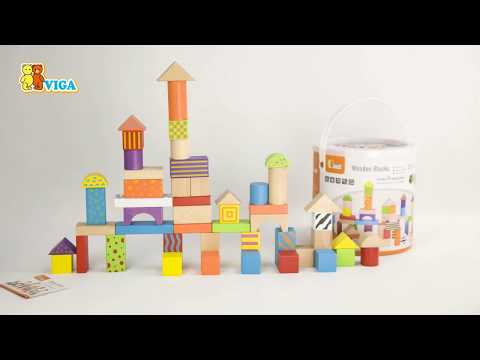 Кубики – одна з базових іграшок для дитини переддошкільного віку. У наборі Viga Toys є трикутні, прямокутні та циліндричні блоки. Усі деталі комплекту виготовлені з високоякісного дерева і вкриті гіпоалергенними фарбами.